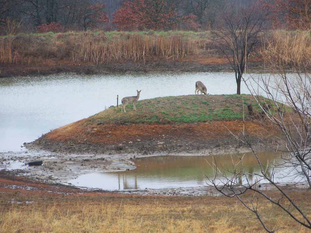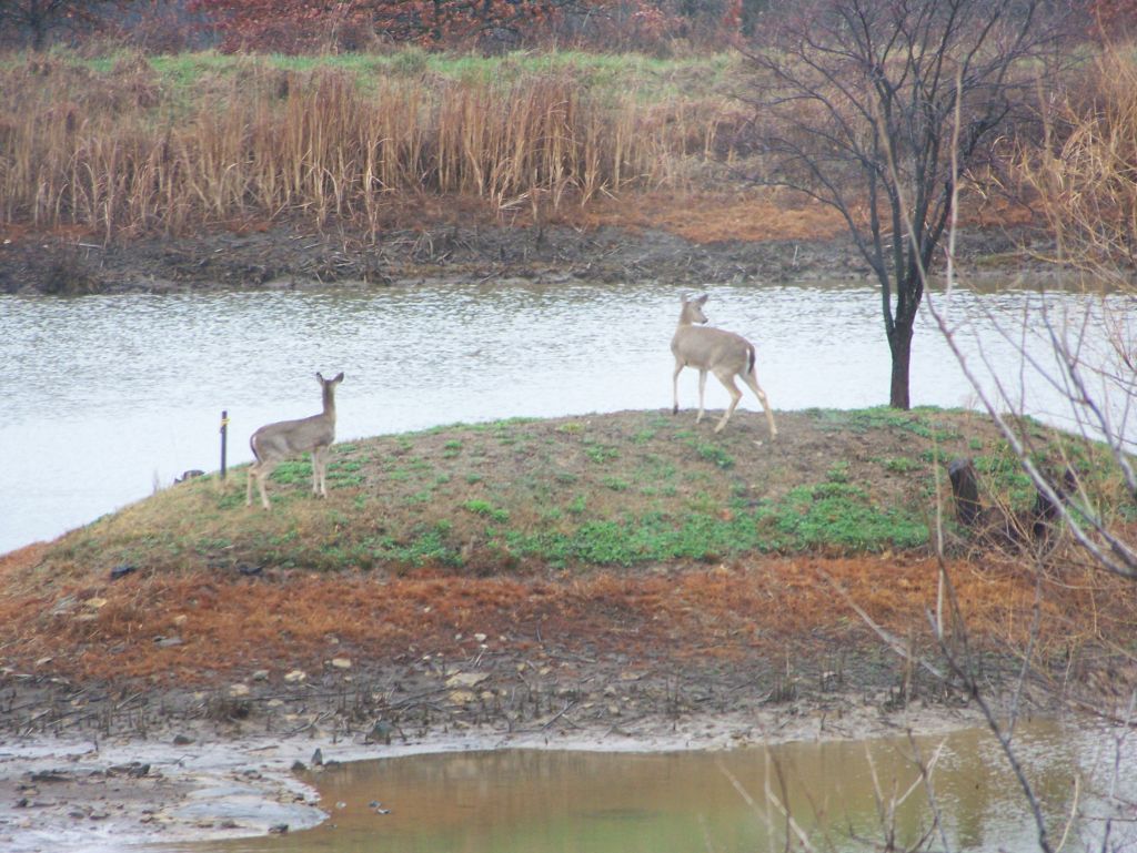 <<Redbud Island fast disappearing. We'd never seen deer on the island before.>>