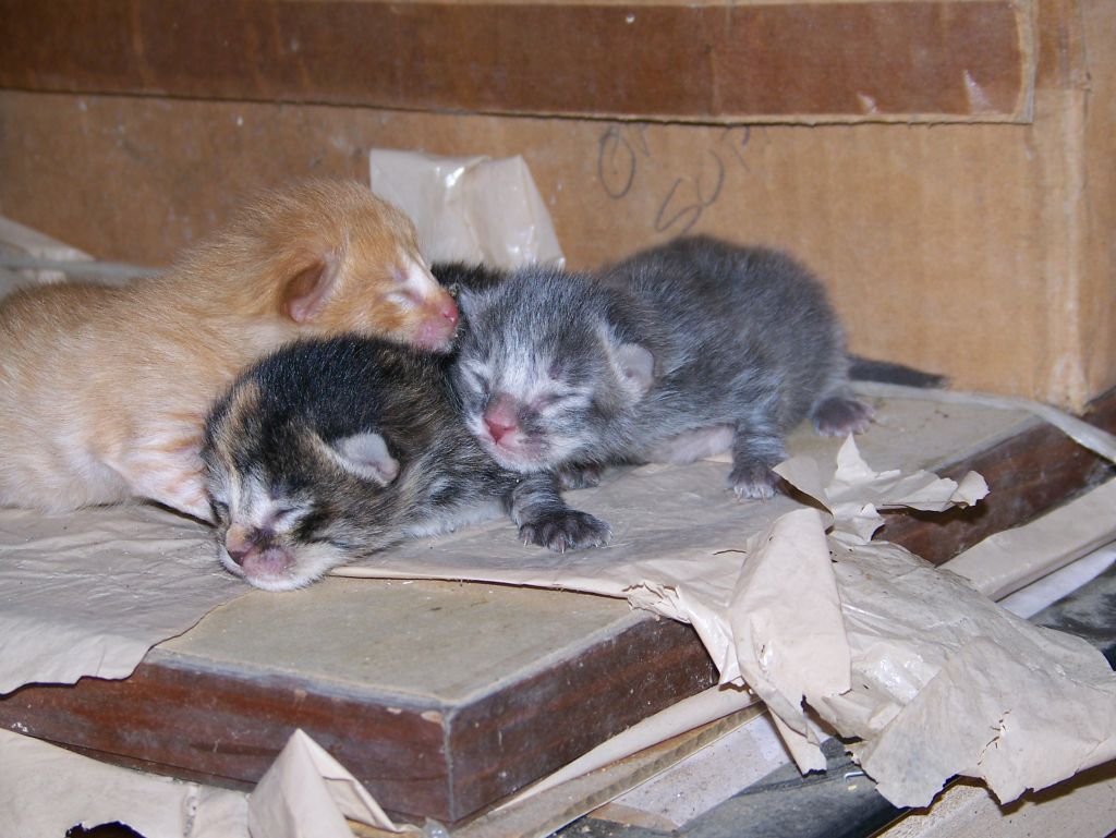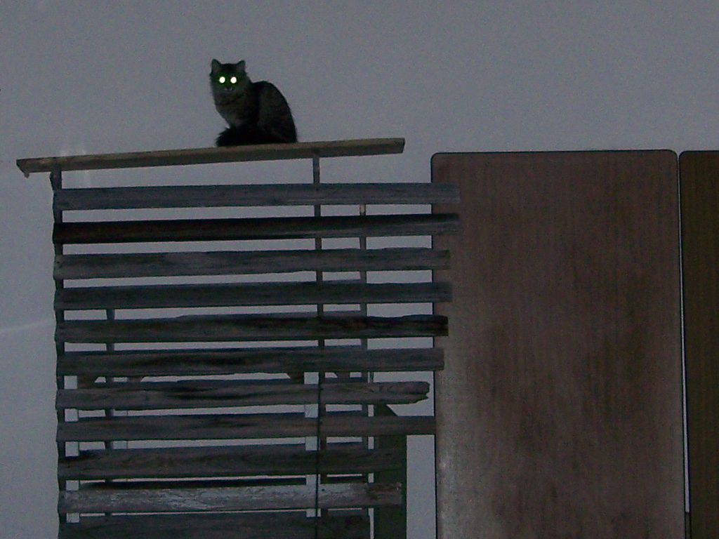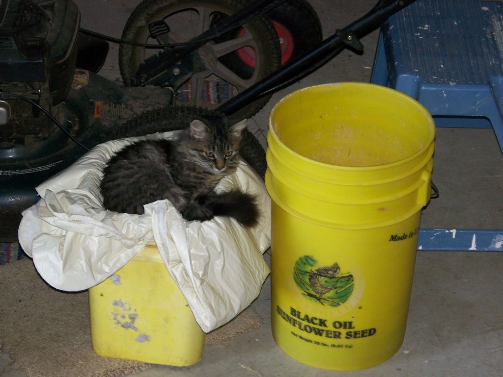 <<Lounging around the garage.  She now has golden eyes like her mother.