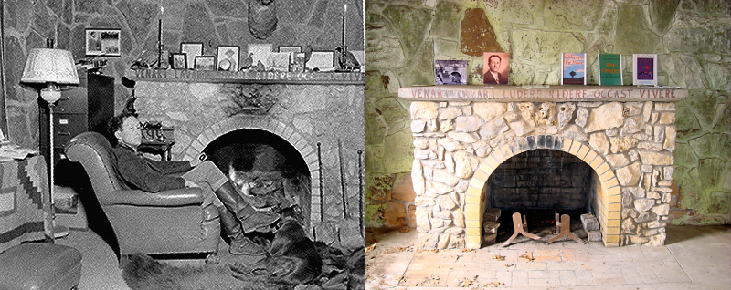 His parlor while he lived there and a recent picture taken after restoration.>> |